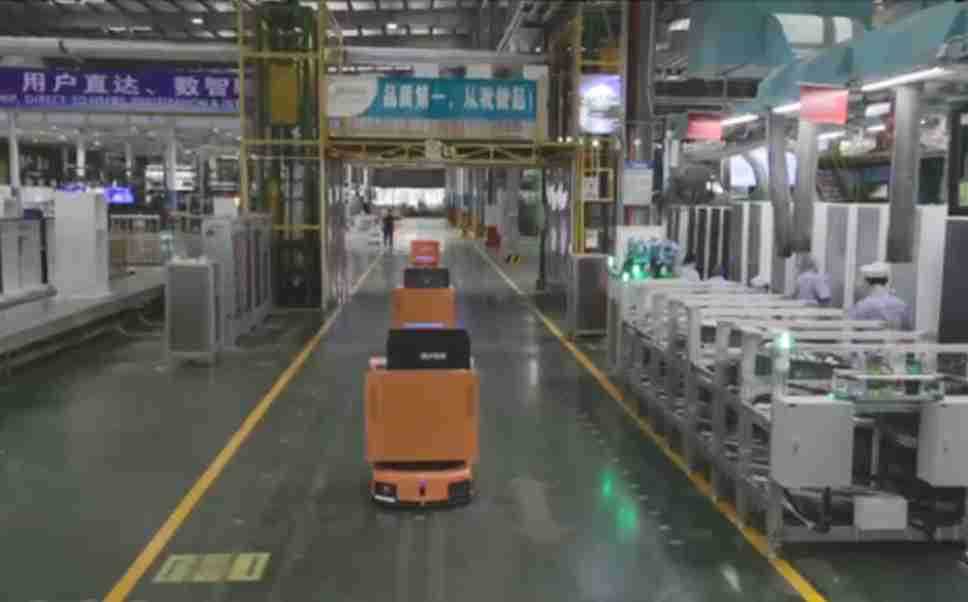 为车载冰箱物流配送打造的智能解决方案,,,,包含产中物流通过潜伏举升AMR搬运至线边,,,,产后成品物流智能仓储,,,流程包含产中物流智能齐套入库,,线边安灯叫料AMR智能配送至线边,,,成品入库、、、出库,,,,通过无人堆高车机器人,,智能仓储管理替代人工作业管理,,,实现更高存储、、更高效率、、更具柔性化的解决方案。。。